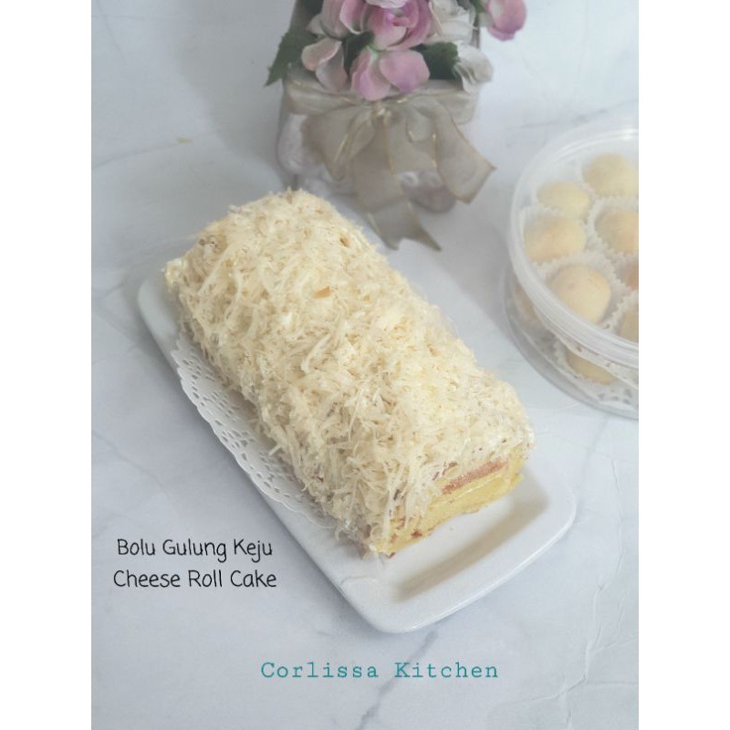 Pink cheese swiss roll oleh : keju roll. Swiss roll adalah sponge cake yang digulung dengan isian cream didalamnya.